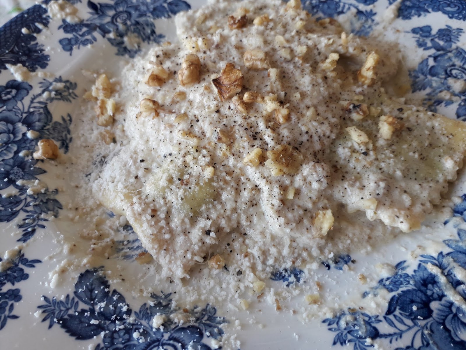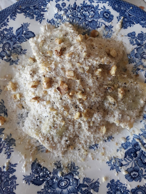 in questo caso i ravioli….sui quali ho aggiunto qualche noce sbriciolata e altro formaggio!
