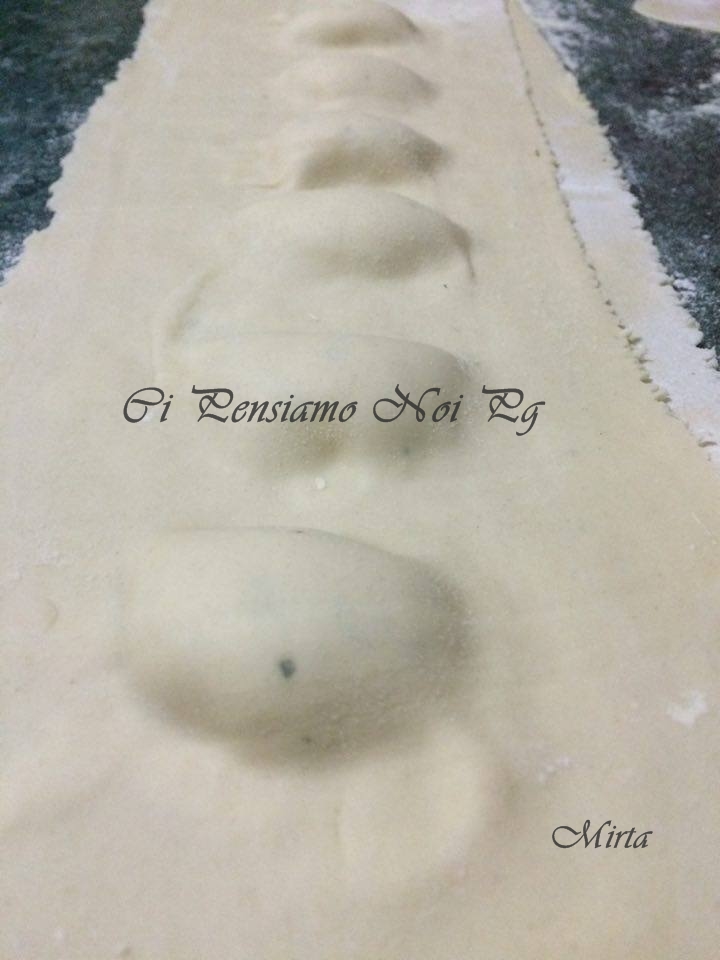 Ho messo la quantità di 1 cucchiaino per ogni raviolo, ho messo sopra l’altra sfoglia e ho chiuso i ravioli.