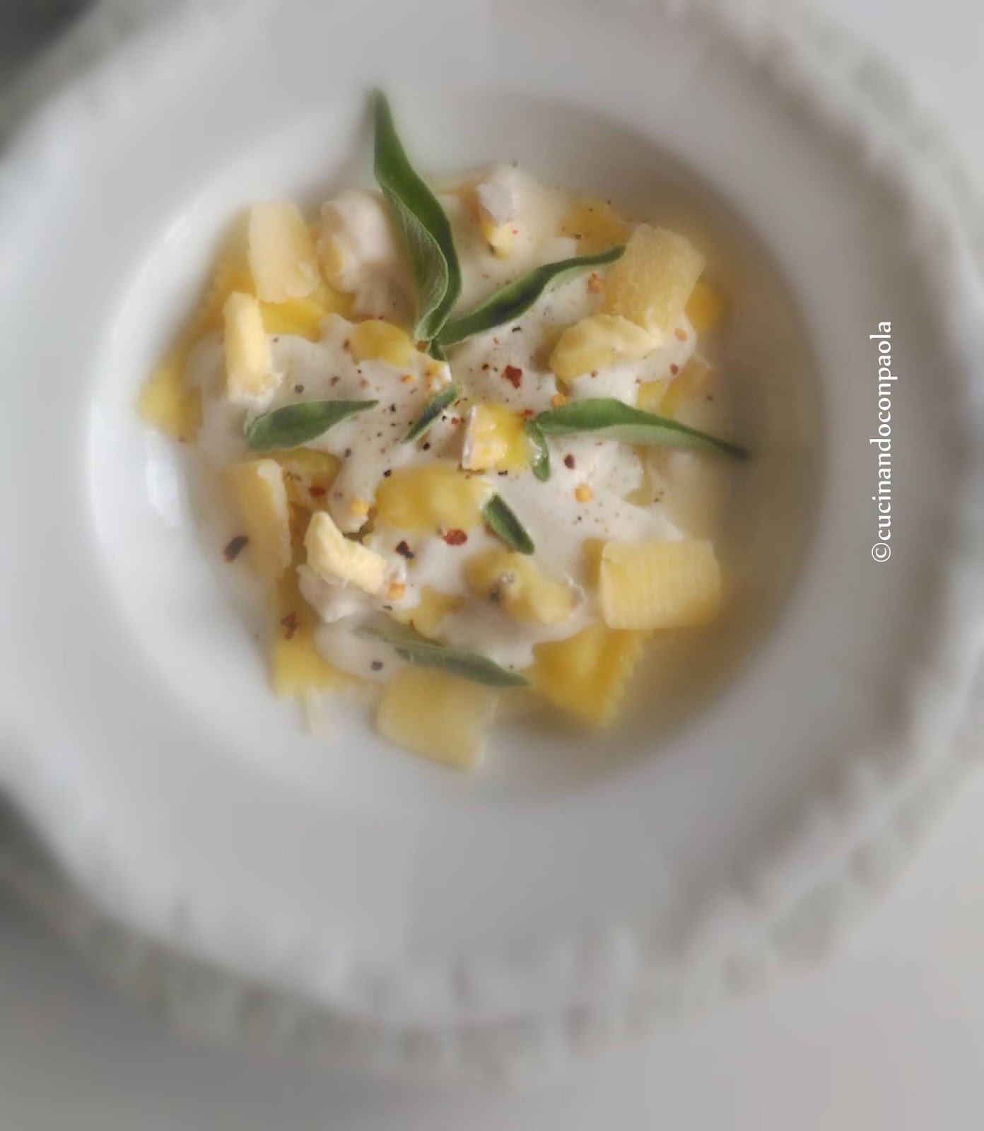 cubetti di gorgonzola, e qualche foglia di salvia.