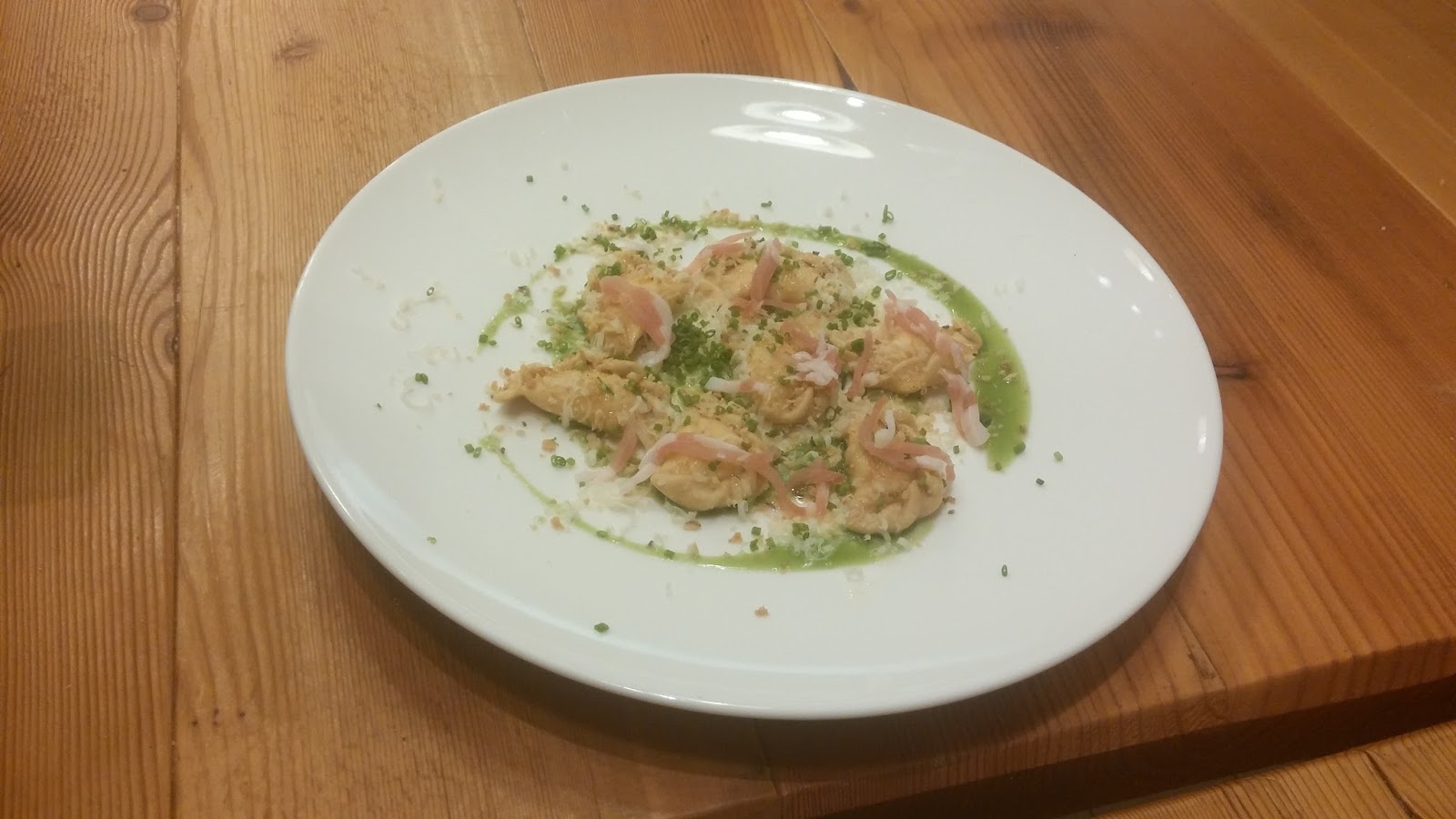 RAVIOLI DI SCHÜTTELBROT CON RIPIENO DI RICOTTA E SALSA ALL’ERBA CIPOLLINA