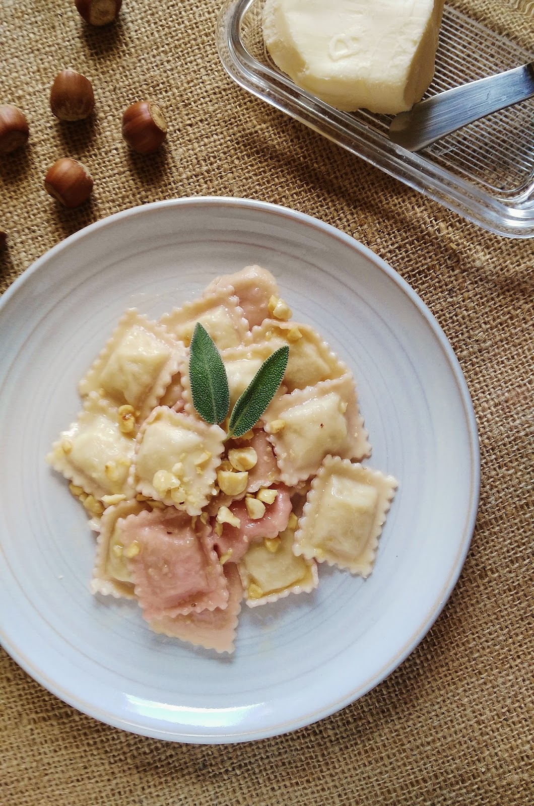 I Ravioli con Sfoglia Classica e alla Barbabietola con Ripieno di Speck e Ricotta sono stati la mia scelta per questo fine settimana. Un condimento fatto di ingredienti semplicissimi ma di qualità e la missione è compiuta.