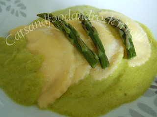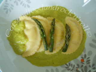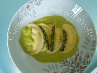 Il gusto degli asparagi senz’altro predomina, il formaggio alla fine lega e ammorbidisce. Si raccomanda di usare ravioli con un ripieno neutro, per non aggiungere altri sapori a un condimento già ricco di suo. Un semplicissimo quanto dignitoso ripieno di ricotta va più che bene.