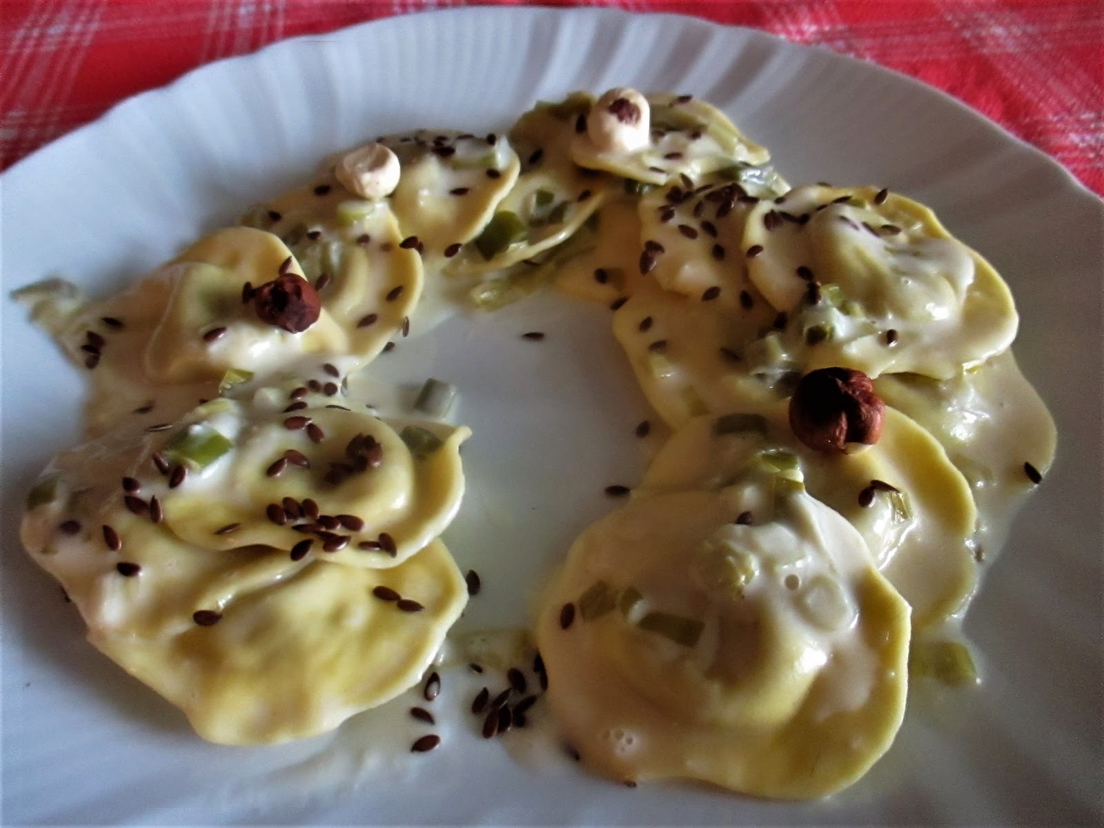 RAVIOLI WITH BECHAMELLE SAUCE, LEEKS AND SEED – Ravioli alla salsa di besciamella e porri