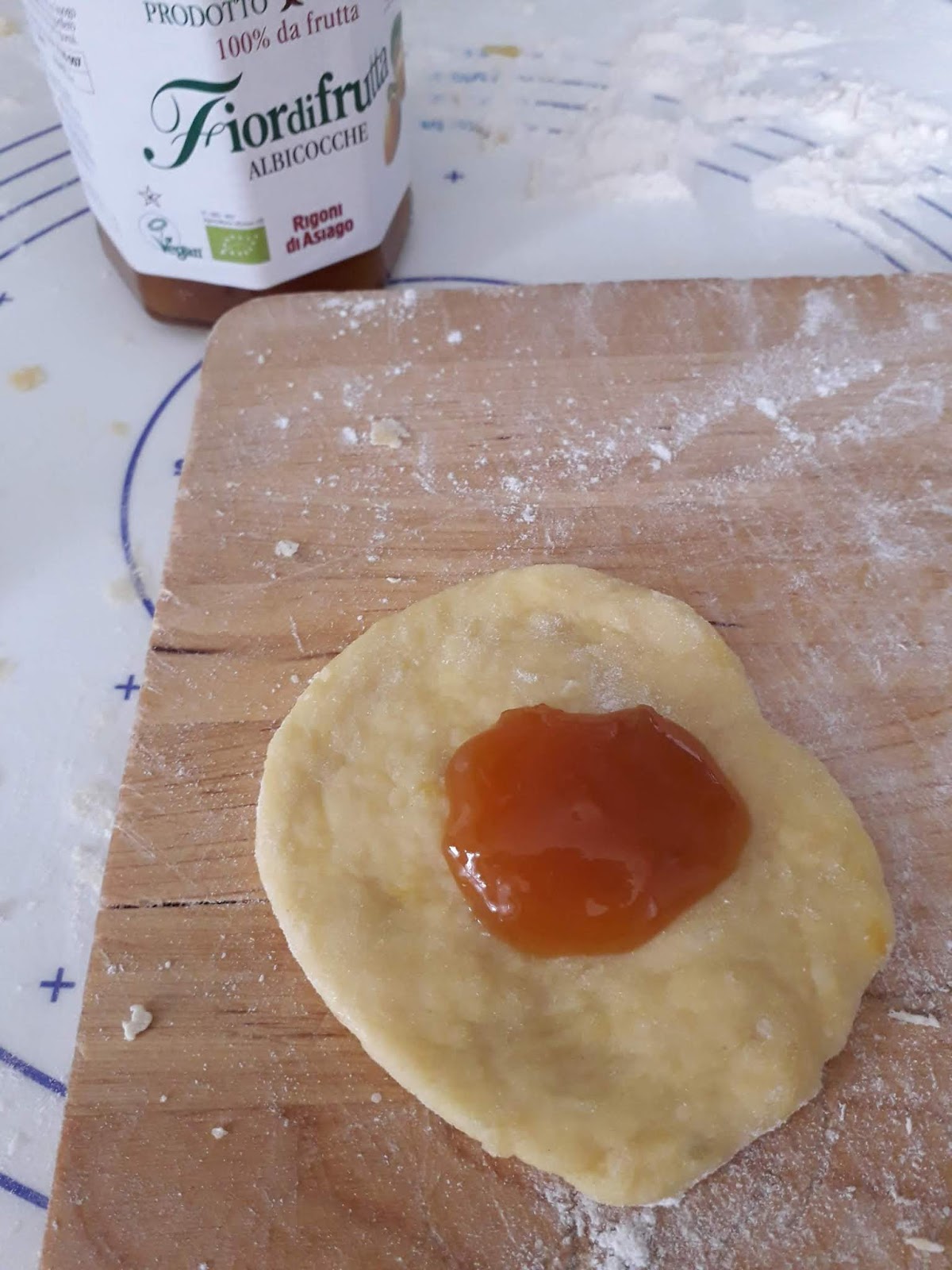 allo spessore desiderato,ricavare tanti dischi che farciremo con fiordifrutta e piegheremo