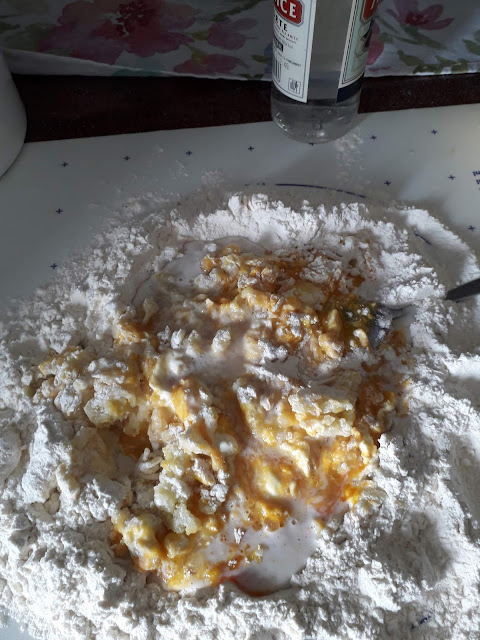Sulla spianatoia,farina,patate,uova,zucchero,limone grattugiato,anice e lievito sbriciolato,