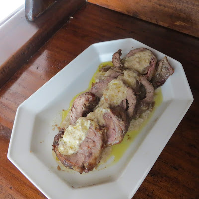 Ho realizzato due piatti: dopo aver tagliato a fette il reale, alcune le ho irrorate con metà del sughetto proveniente dalla cottura della carne in forno, alcune fette le ho condite con l’altra parte del sughetto a cui ho unito un po’ di panna da cucina.