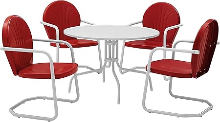 Crosley Furniture Griffith 5 Piece Metal Outdoor Dining Set With Table And Chairs Coral Red