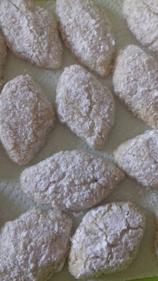 impastare bene poi dare forma ai biscotti. circa 20/23 gr l’uno . passarli nello zucchero a velo su un lato e disporli sulla teglia da forno con carta forno