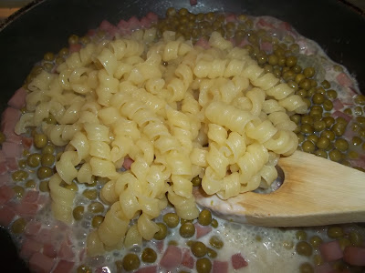 Mescolate i piselli al prosciutto, insaporite il tutto e se gradite potete aggiungere anche un altro pò di panna.