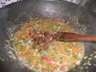 Per completare taglio a filetti delle mandorle private della buccia che aggiungerò al sugo. Faccio cuocere al dente i rigatoni e li faccio saltare in padella.