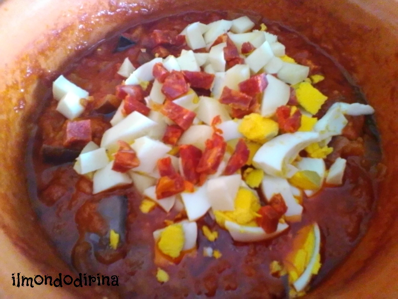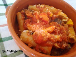 E’ il piatto tipico di Soverato Superiore, il mio paese natio, che ci tramandiamo da madre in figlia da decenni: un primo semplice ed economico preparato unicamente con i prodotti dell’orto e della dispensa che le nostre nonne rifornivano durante le varie stagioni; un primo piatto che possiamo considerare unico per la ricchezza degli ingredienti; un piatto che in estate è di consumo quasi giornaliero visto l’abbondanza delle melanzane a Km 0 e che è obbligatorio preparare in presenza di ospiti per la sua bontà, frutto di prodotti freschi e genuini e perchè è uno dei tasselli della nostra identità culturale.