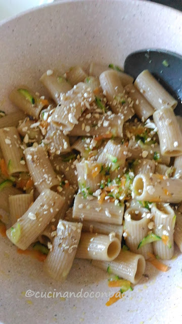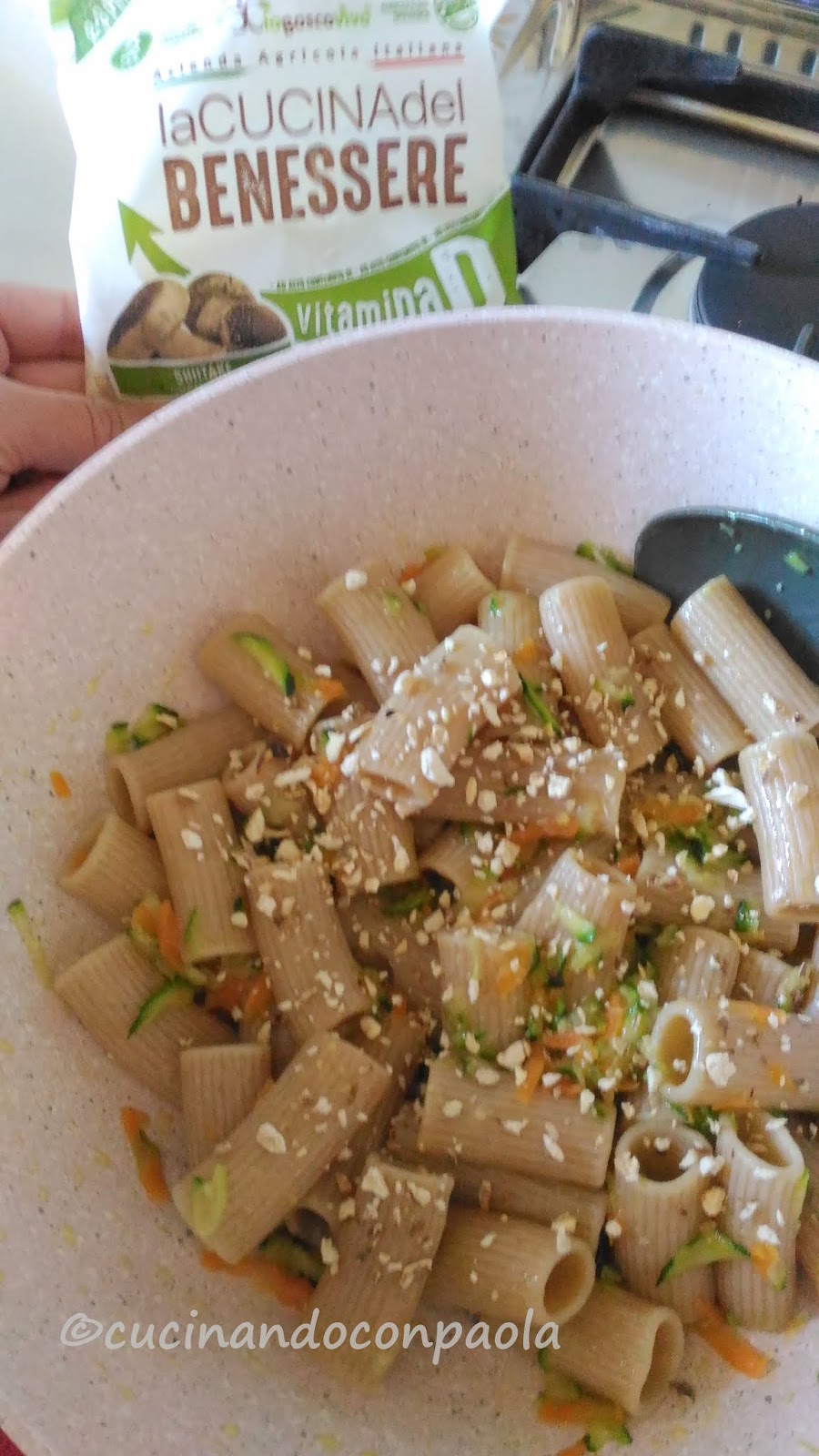 unite il granulato di funghi shitake e fate saltare la pasta per qualche minuto.