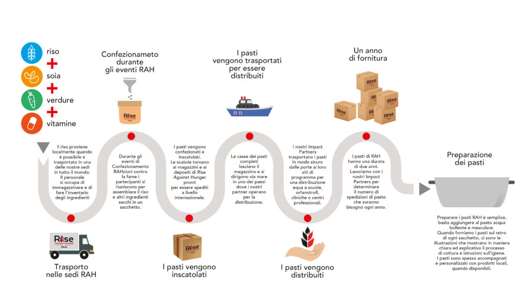 Di seguito vedrete una schema delle razioni di RICE AGAINST HUNGER: