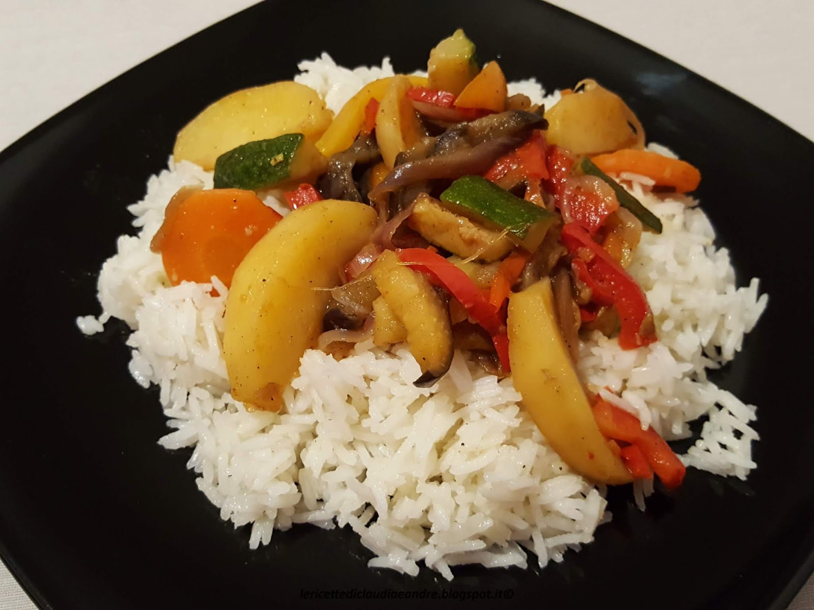 Se amate le verdure questo piatto fa per voi. Un misto di verdure che sono alla portata di tutti come cipolle, carote, peperoni, melanzana, patate, zucchine e per me immancabile mio brodo granulare vegetale che arricchisce ogni giorno i miei piatti, trasformano un pranzo o la cena in qualcosa di straordinario. Non sempre bisogna usare delle cose sofisticate per ottenere buoni risultati, ma anche con le cose semplice come tutte queste verdure e un pò di riso, si possono ottenere dei piatti favolosi, sani e gustosi. Ecco a voi la ricetta :