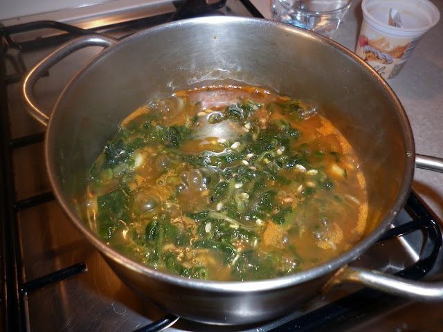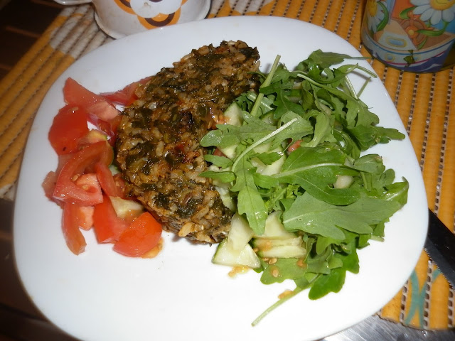 Ho ancora mescolato, abbassato la fiamma e aggiunto gli spinacini puliti, tritati e crudi. A questo punto ho incoperchiato il pentolino messo al minimo la fiamma. Dopo circa una ventina di minuti ho spento, mescolato nuovamente e lasciato coperto sul fuoco spento su cui ho cotto il riso dopo aver tritato dell’erba cipollina che ci stava proprio bene.