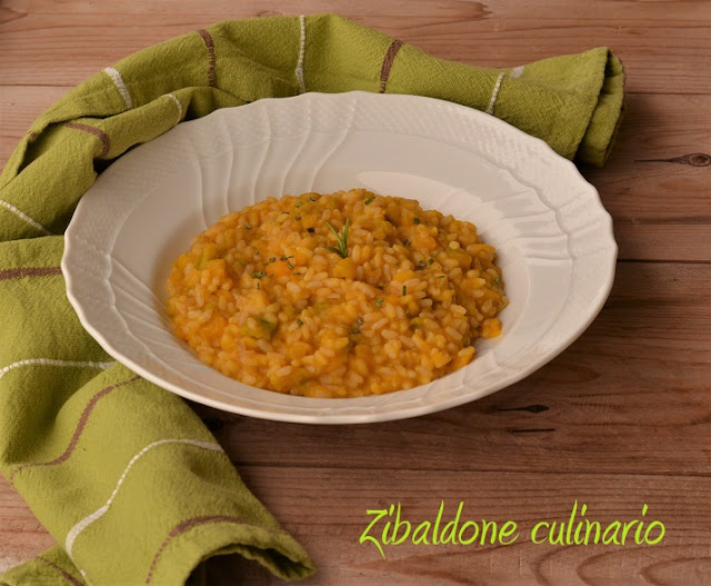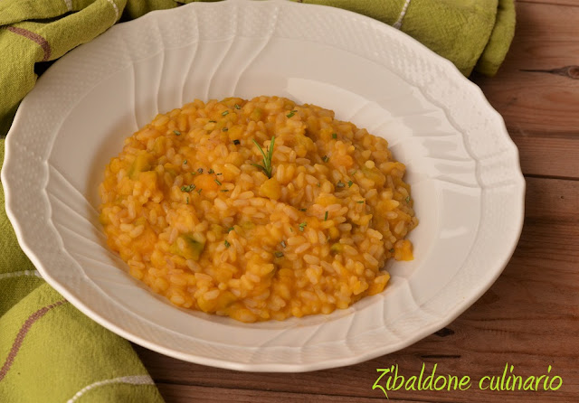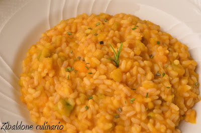 Lavare il riso e cuocerlo in una pentola con l’acqua, il sale, la zucca tagliata a cubettini che si sfalderanno in cottura creando una crema.