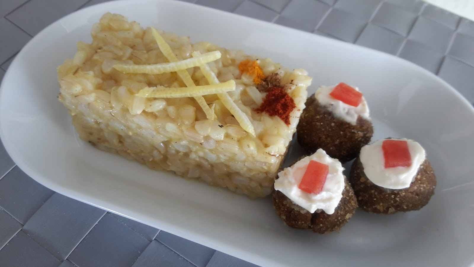 Un piatto unico e sostanzioso un ottimo riso integrale speziato e profumato al limone e delle sfiziose polpettine ai funghi con panna acida un’ esplosione di sapori orientali all’ insegna del cibo sano e naturale.