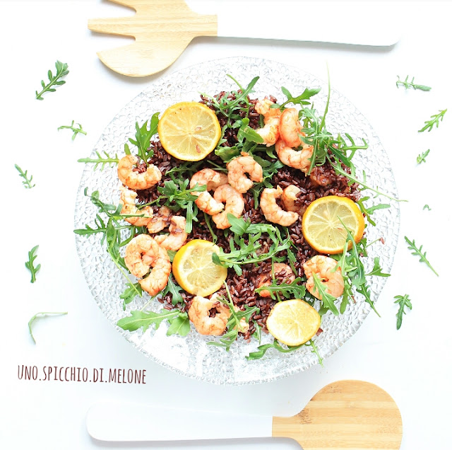 Il RISO NERO THAI con GAMBERI al LIMONE e RUCOLA è un primo piatto semplice e facile da fare!