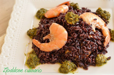 Riso venere con bottarga, radicchio e mazzancolle di Simona
