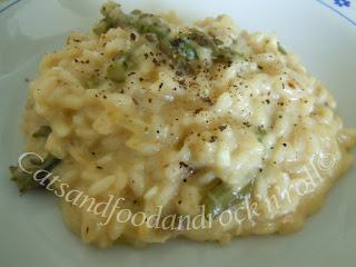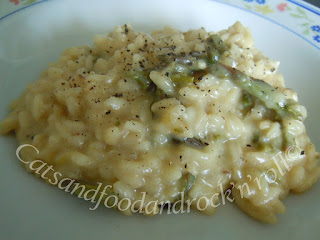 Questa è un’altra proposta con gli asparagi, fatta ovviamente tempo fa, quando era la loro stagione, e anche stavolta nata in maniera del tutto casuale. Infatti, avevo preso gli asparagi per farli così e mangiarli come semplice contorno. Poi ho pensato che avrei potuto sacrificarne una parte per fare un buon risotto e, strada facendo, mi sono anche ricordata di avere in frigo un tocco di formaggio castelmagno, con cui avrei potuto mantecarlo.