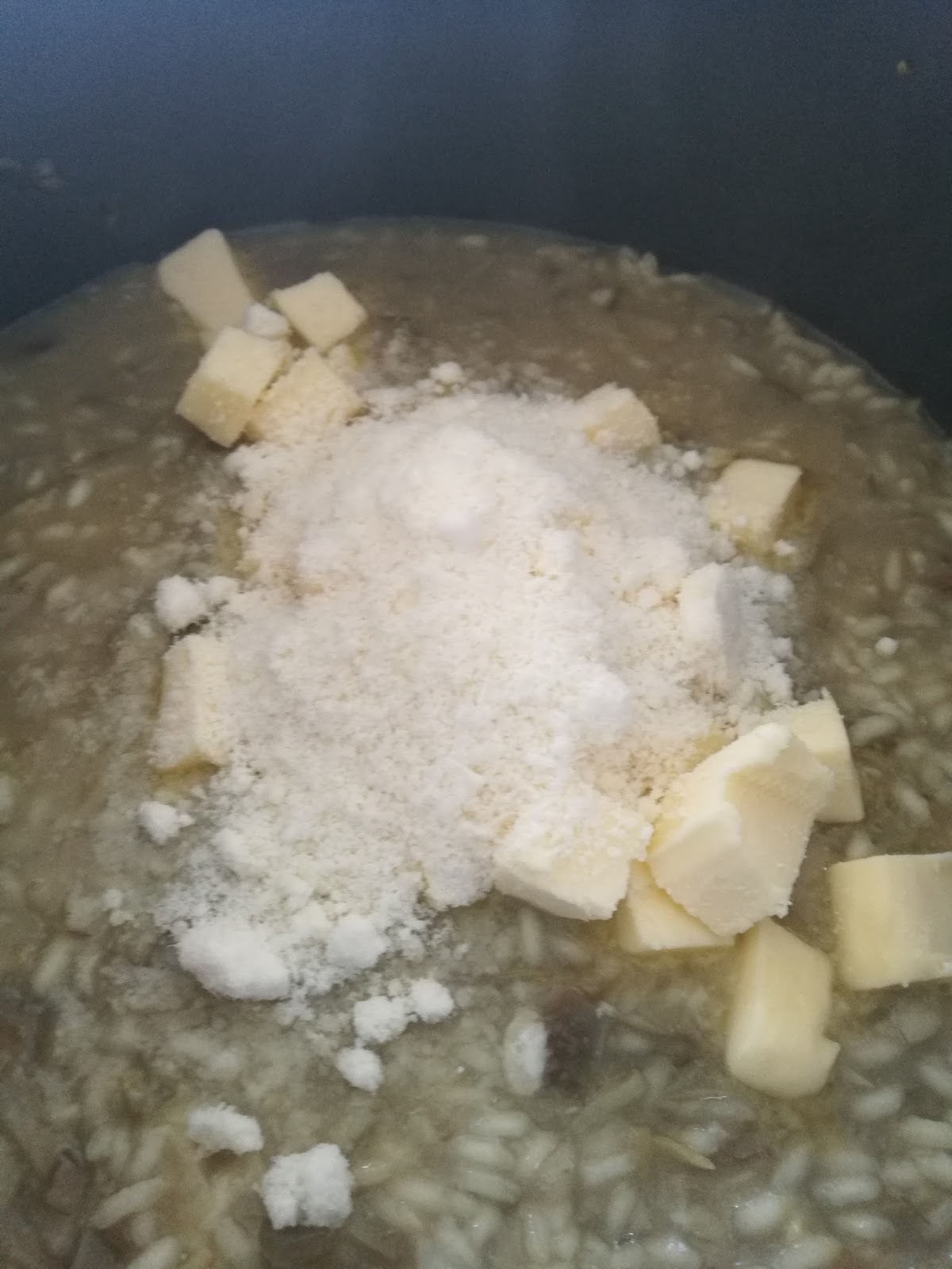 Mantecate fuori dal fuoco con burro e parmigiano. Aggiungete un cucchiaio raso di aceto di vino bianco.