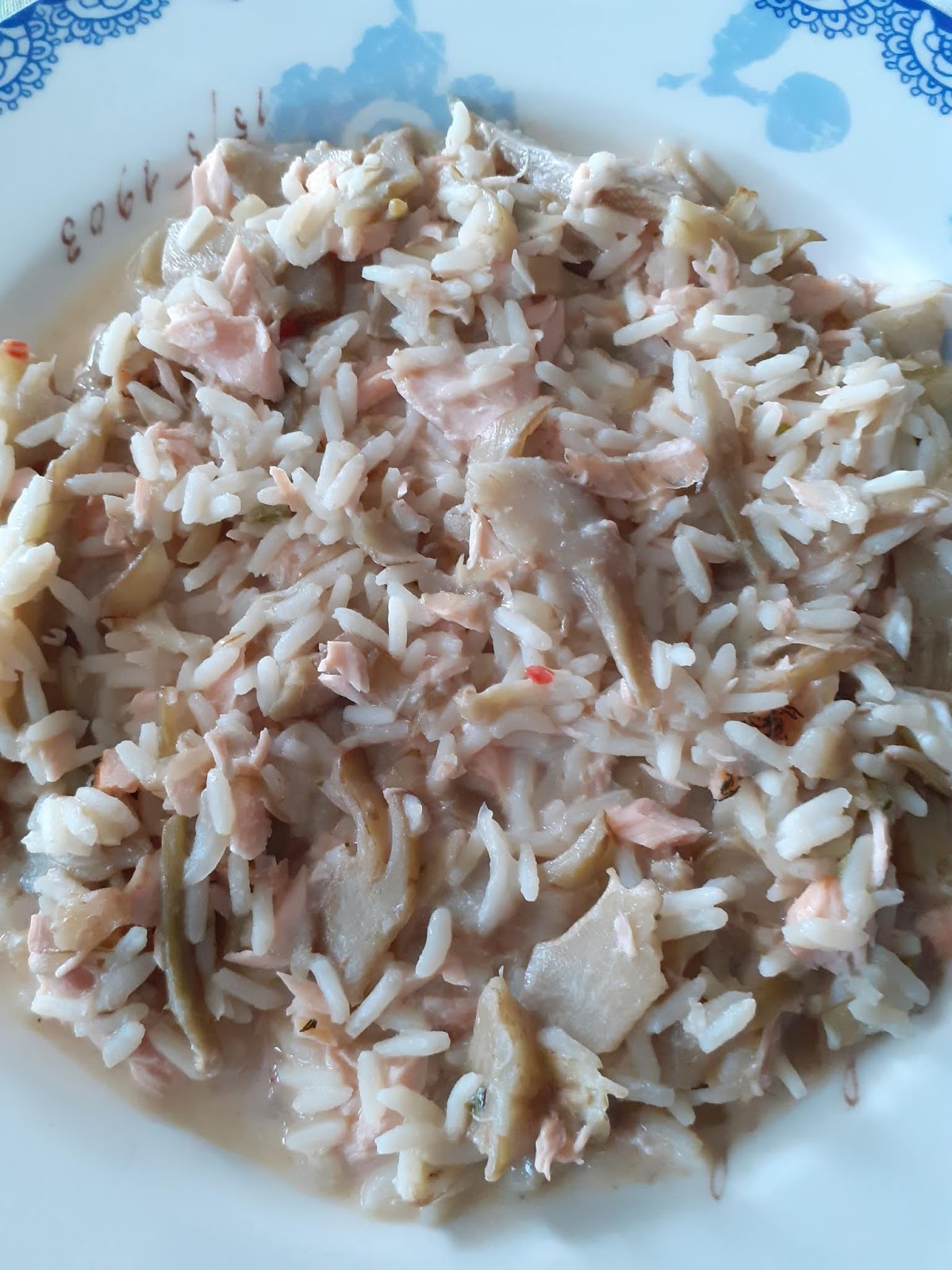 In un pentolino fatto scaldare a vuoto,unire,olio,cipolla ,prosciutto, carciofi,peperoncino e riso