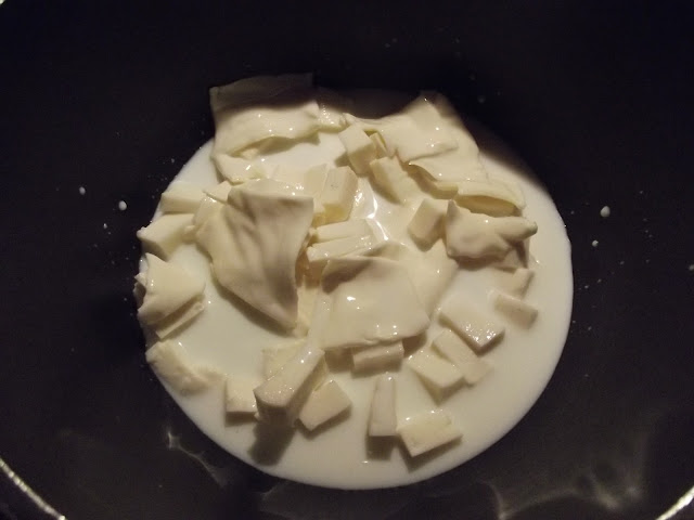 Tagliate dapprima i formaggi a tocchetti e fateli sciogliere lentamente in un tegame con del latte, salate e coprite.
