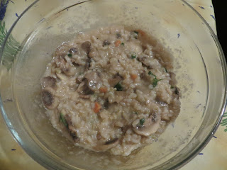 Mescolare in un pentolino farina e olio, aggiungere l’acqua e mescolare cuocendo a fiamma media. Quando si sarà iniziata a compattare, appena bolle spegnere la fiamma ed unire lievito alimentare e sale. Cuocere il riso per 45 minuti. A parte imbiondire l’aglio in pezzettini in un filo d’olio in padella, aggiungere la carota tagliata finemente ed i funghi e portarli a cottura mescolando di tanto in tanto. Aggiungere sale e prezzemolo tritato ed unire tutto, mescolare e portare in tavola.