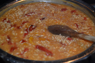Gli ingredienti sono pochi e proprio per questo vanno scelti con cura e di ottima qualità e biologici: io ho usato riso e peperoni, le cipolle e gli odori del mio orto e l’olio extravergine d’oliva Canzoniero “Le Tre Sorelle”, una piccola impresa a conduzione familiare nata pochi anni fa e che con il tempo si è posta l’obiettivo di creare un prodotto proveniente esclusivamente dai frutti della tenuta.