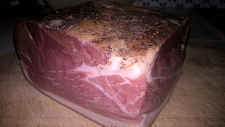 Tagliate una fetta spessa di speck e riducetela a piccoli cubetti.