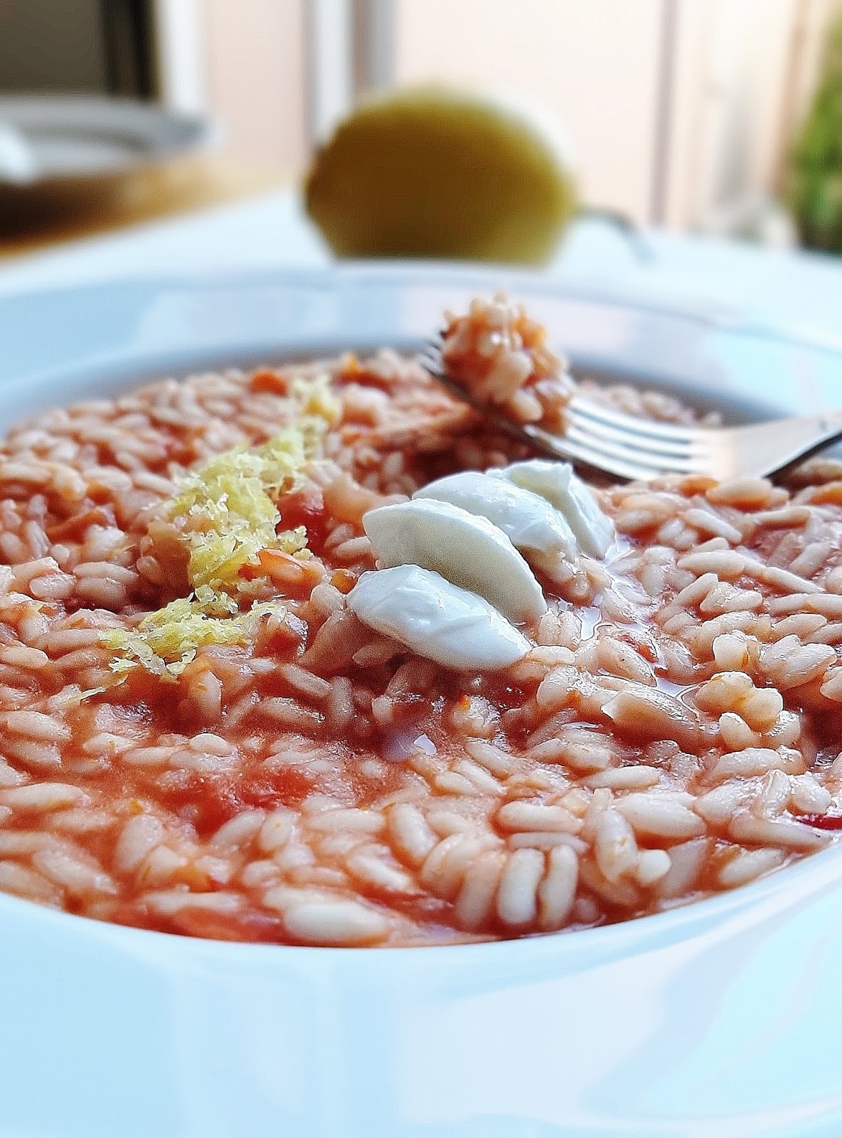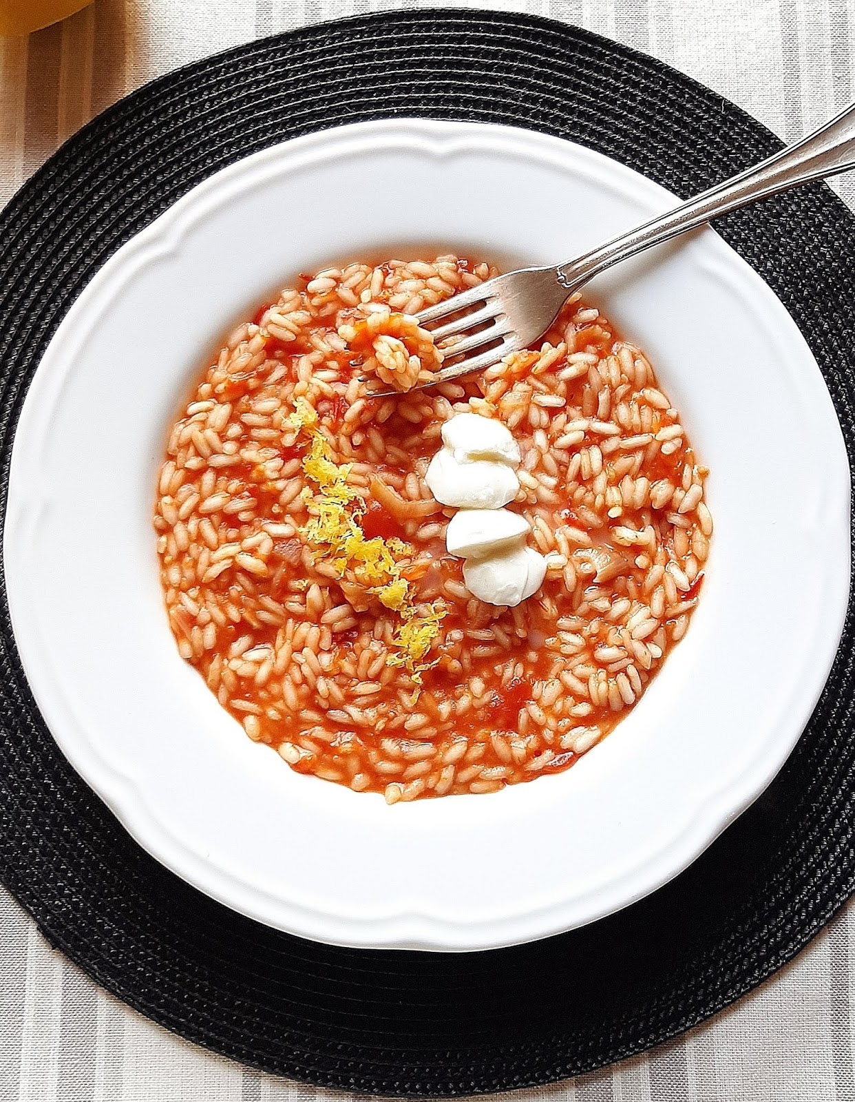 Risotto al Pomodoro con Zeste di Limone e Mozzarelline di Bufala Campana DOP, semplice e gustosissimo primo piatto ispirato ad una ricetta reperita su