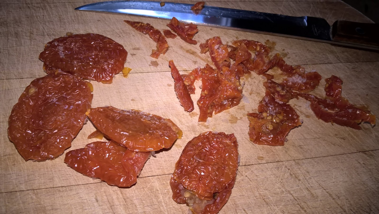 Taglio a pezzetti dei meravigliosi pomodori secchi (vedi ricetta) e li aggiunmgo al riso in cottura.
