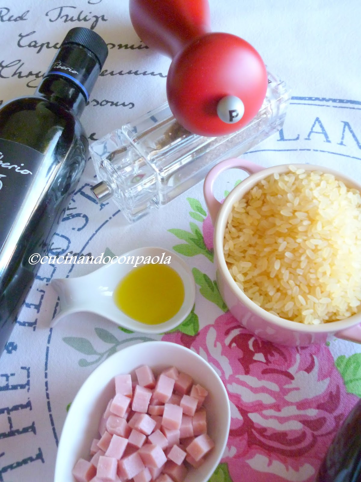 Mescolate di tanto in tanto. A metà cottura aggiungete il prosciutto cotto a cubetti.