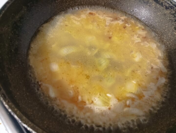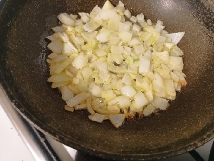 In una casseruola sciogliere metà del burro e far appassire la cipolla tritata finemente a fuoco dolce.
