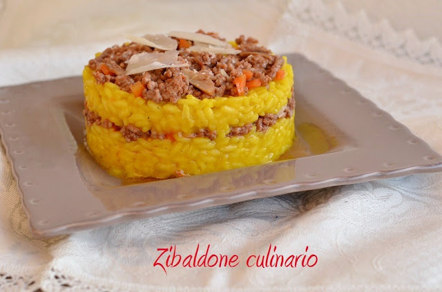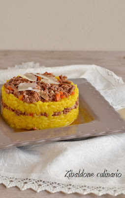 Servirlo facendo uno strato di riso farcito col ragù e grana grattugiato ricoperto con l’altra metà di riso ragù e grana (io ho messo scaglie), un riso a strati!