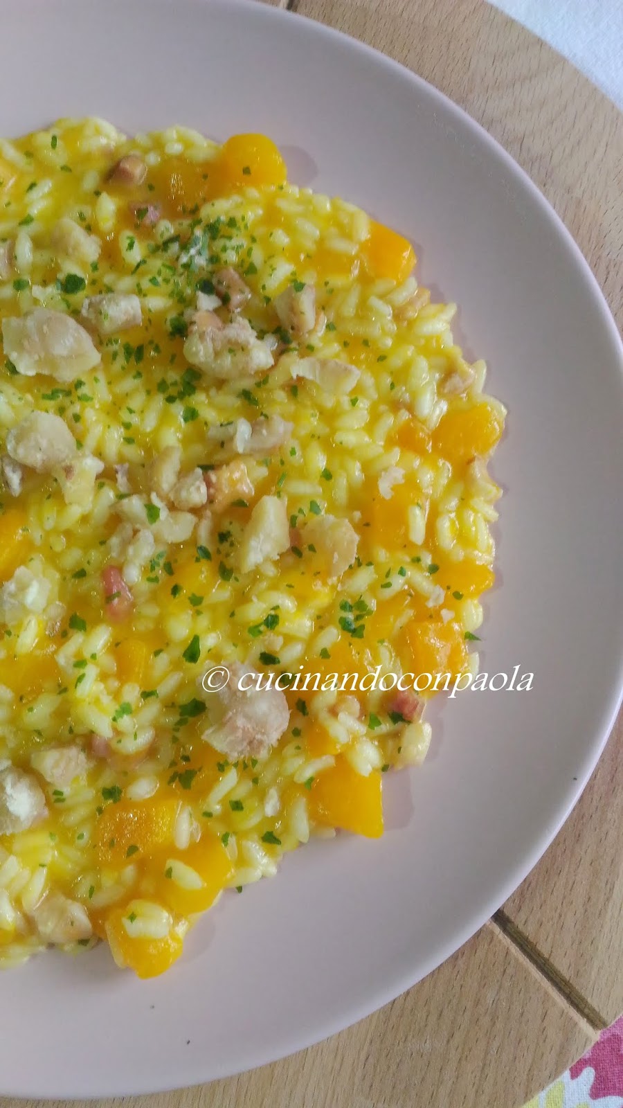Servite con la pancetta, zucca e altro parmigiano grattugiato.
