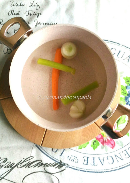 mettetela su fuoco medio. Aggiungete all’acqua il sedano,