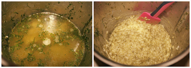 Aggiungete il riso e tostatelo per altri 3 minuti sempre a velocità 1 ma con movimento a lame inverse.