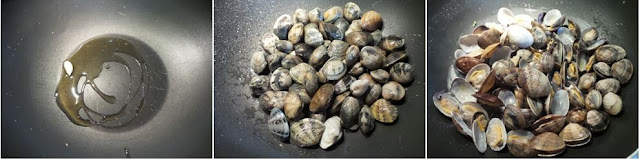 In un saltapasta mettiamo due cucchiai d’olio e l’aglio spellato e schiacciato. Facciamolo rosolare a fiamma dolce e togliamolo appena fatto. Mettiamo le vongole, alziamo la fiamma al massimo e sfumiamo con mezzo bicchiere di vino quindi copriamole con un coperchio e facciamole cuocere il tempo necessario affinché si aprano tutte. Appena pronte, quindi, scoliamo e teniamo da parte l’acqua di cottura filtrata.
