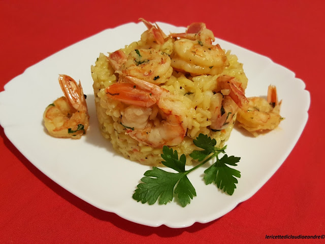 - Se in famiglia tutti amano i gamberoni, aggiungere parte di loro al risotto (lasciando qualcuno per il decoro), nel momento che aggiungete lo zafferano e proseguire con la cottura. Io non l’ho fatto perché non tutti mangiano il pesce e i frutti di mare, ma ci stavano molto bene insaporiti anche insieme.