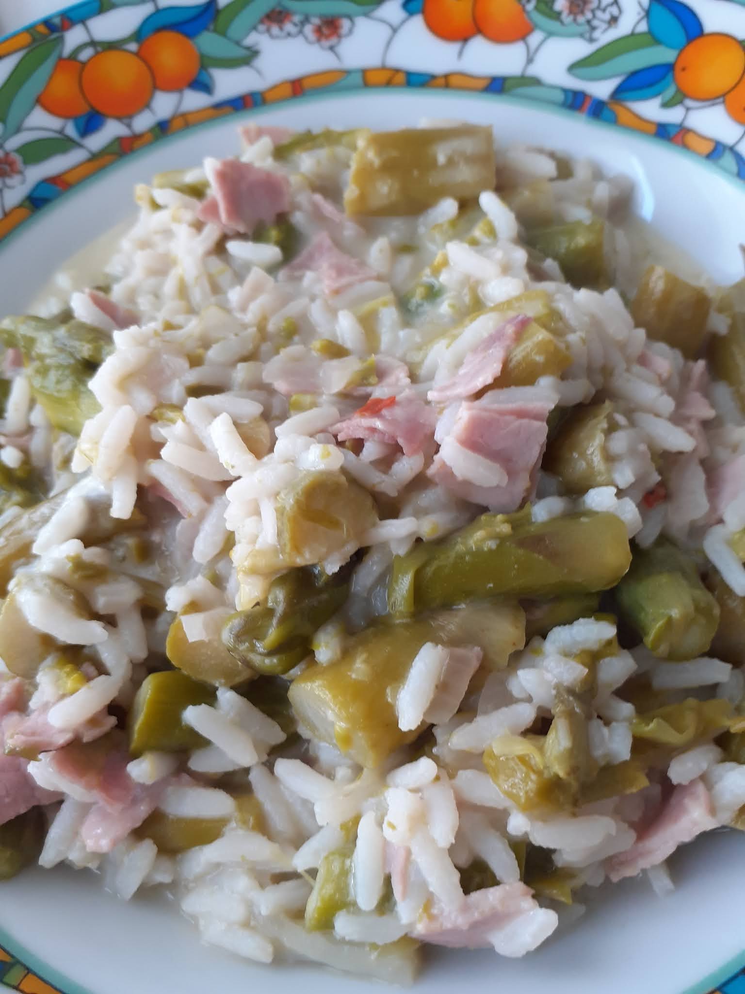 acqua… portiamo a cottura  aggiungendo, negli ultimi minuti il restante prosciutto ,asparagi e