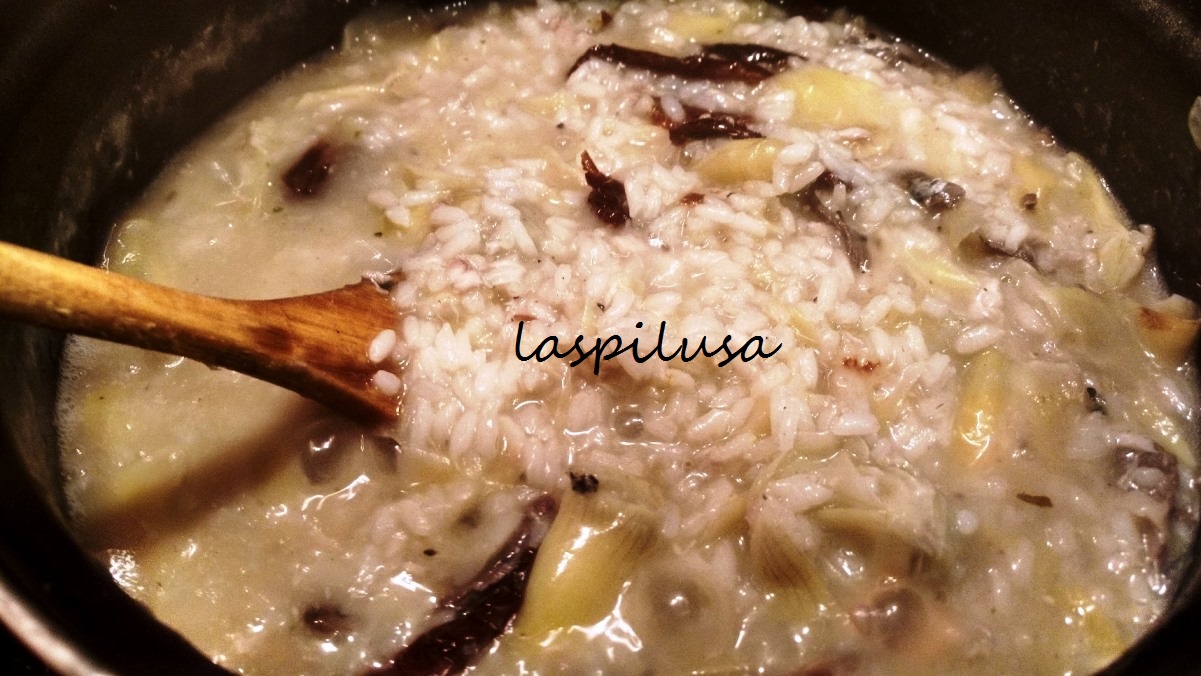 Qualche sera fa, aprendo il frigo, per la serie “proviamo a vedere cosa viene fuori con quello che c’é”, ho scoperto nel piatto questo accostamento favoloso di sapori, delicato e deciso allo stesso tempo. Un risotto sfizioso per una fredda serata autunnale… bon appétit!