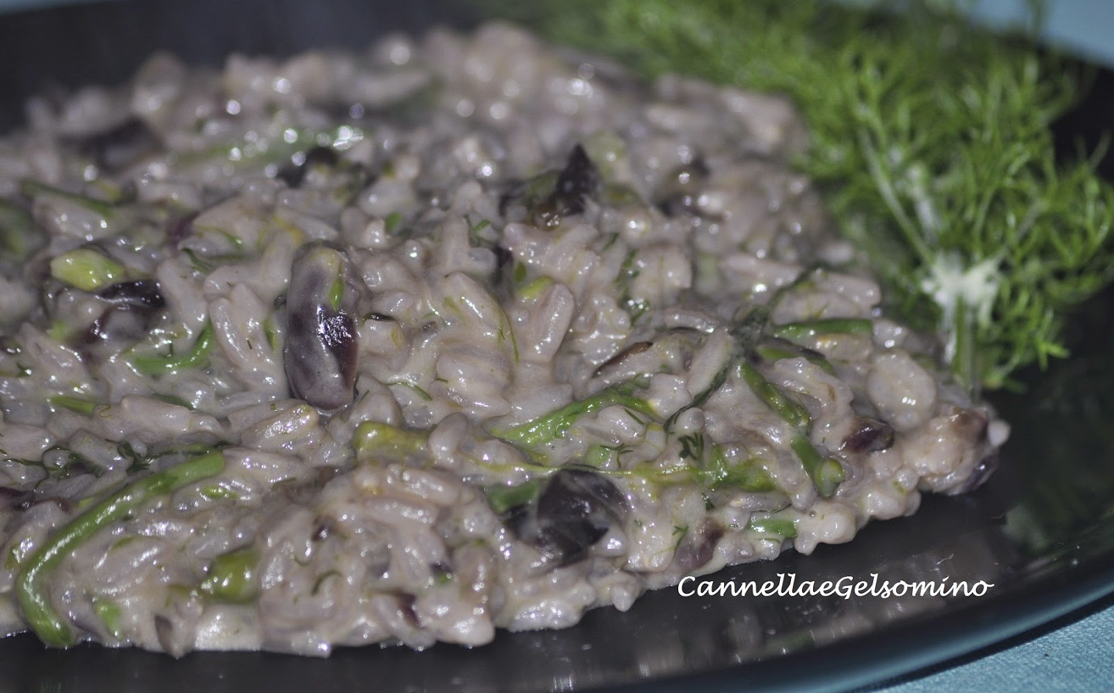 Ingredienti: 300 g di riso carnaroli, un mazzetto di asparagi, mezzo radicchio, un cipollotto, finocchietto selvatico fresco (se non doveste trovarlo utilizzate le barbe tenere del finocchio), 100 g formaggio morbido (roviola o altro),olio extravergine d’oliva, brodo vegetale, sale, pepe.