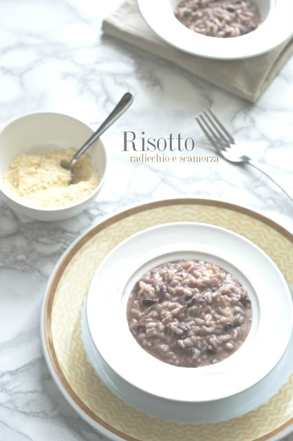 Il risotto con radicchio e scamorza affumicata è tra i risotti invernali che più preferisco, il gusto leggermente amarognolo del radicchio si sposa alla perfezione con la dolcezza e la leggera affumicatura della scamorza, per un risultato filante e irresistibilmente cremoso.
