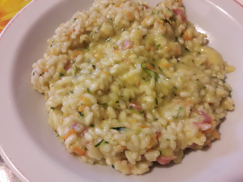 Un’idea semplice per un risotto leggero e con pochi grassi, ma cremoso e saporito, con tante verdure che però, essendo tagliate a julienne, non “disturberanno” neanche quei bambini solitamente restii a mangiare ortaggi. La ricetta è indicata per il Bimby (o altri robot simili) ma naturalmente, come ogni risotto, è facilissimo da fare normalmente in tegame sul gas.