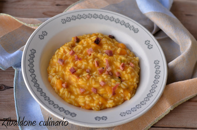 Qui ho mantecato con un poco di latte evitando il burro visto il carattere delle rubrica (ogni tanto cerco di ricordarmi che dovrebbero essere ricetta light!), e aggiunto un prodotto sapido come lo speck per compensare la dolcezza della zucca. A noi è piaciuto, provatelo e fatemi sapere .