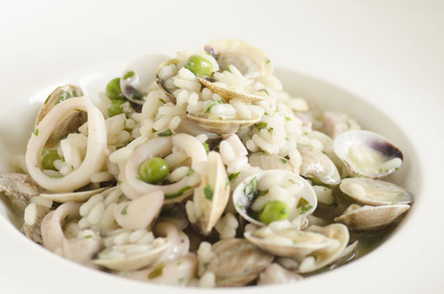 Tutti tipi di pesce che richiedono una brevissima cottura, per questo saranno solo scottati e poi aggiunti alla fine; sarà ancora più buono con un brodo di pesce che servirà per cuocere il risotto.