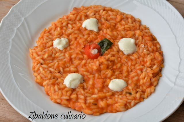 Il bello di questa ricetta, a parte l’insieme dei sapori e dei colori, è come vengono preparati i pomodori: sono al forno e ben conditi con aromi e formaggi, si frullano poi per formare un sughetto speciale. Questo andrà a condire il riso, ma possiamo utilizzarlo pure come sugo per un piatto di spaghetti veloce oppure anche per “rinvigorire” un secondo (uova o fettina di carne) un po’ sciapo!