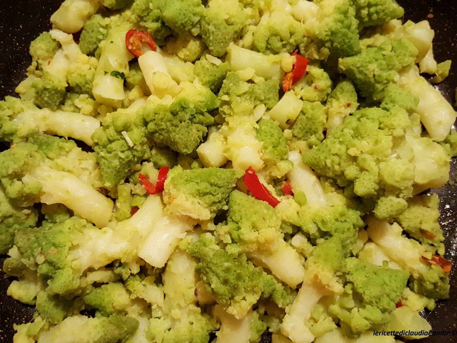 - Aggiungere il broccolo già cotto ed insaporire insieme per 2-3 minuti.