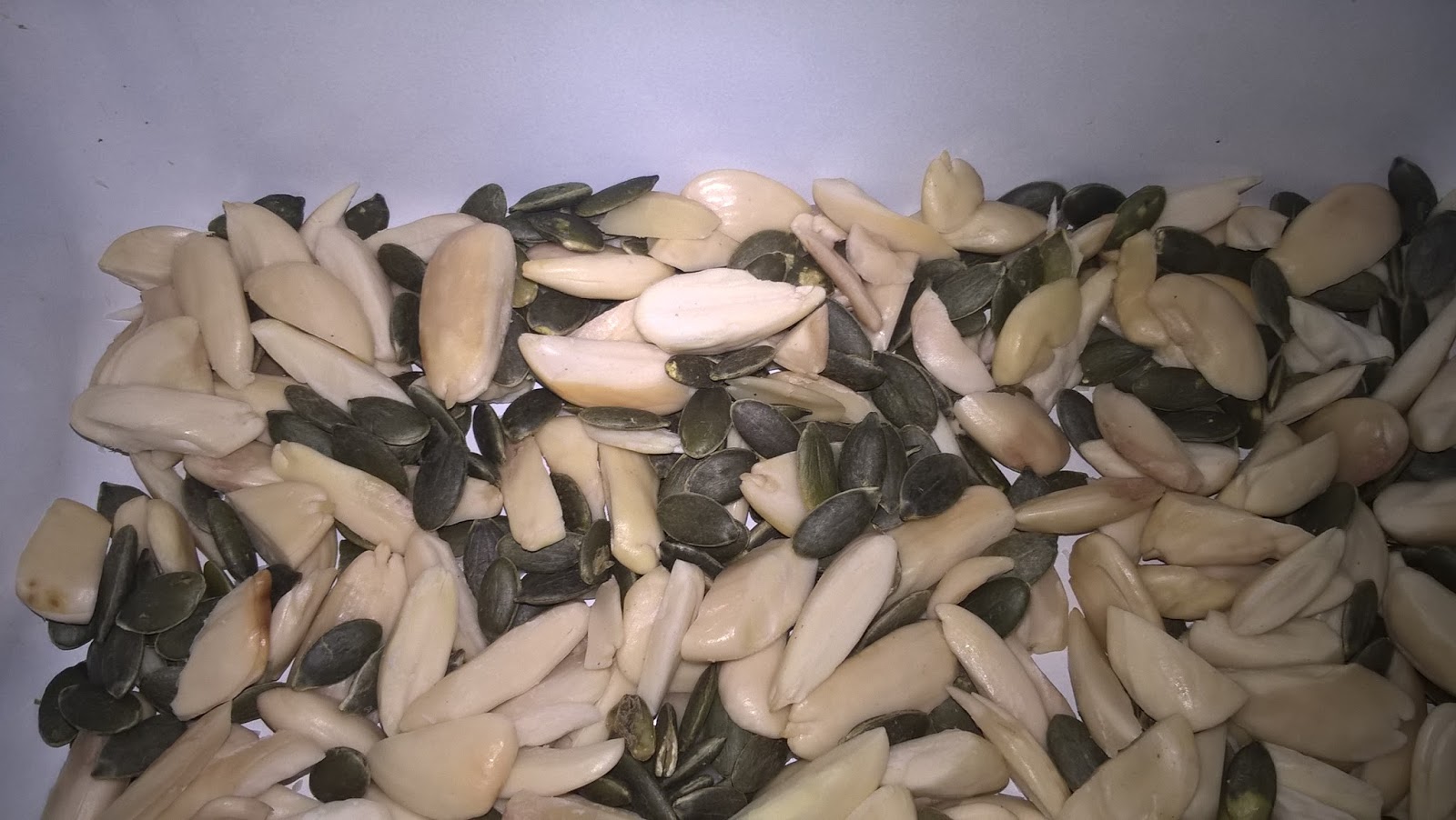 Durante la cottura del risotto avrete fatto tostare le mandorle e i semi di zucca in forno.